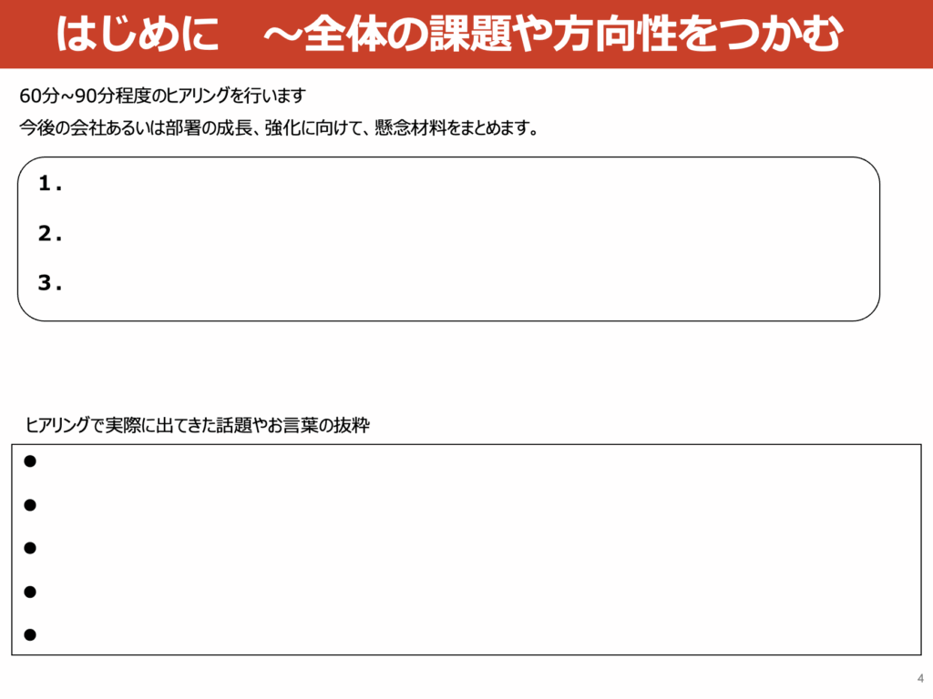 ご提案 社外(戦略)人事部長としてどのように課題に関わっていくのか提案させていただきます。